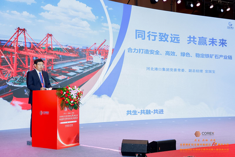 河北港口集團(tuán)黨委常委、副總經(jīng)理宣國(guó)寶做《同行致遠(yuǎn)、 共贏未來,合力打造安全、高效、綠色、穩(wěn)定鐵礦石產(chǎn)業(yè)鏈》主題演講。他介紹了河北港口集團(tuán)建設(shè)運(yùn)營(yíng)及鐵礦石業(yè)務(wù)情況,包括在加強(qiáng)鐵礦石裝卸倉(cāng)儲(chǔ)保障能力、鐵礦石集疏運(yùn)、拓展鐵礦石供應(yīng)鏈條等方面的重要進(jìn)展。