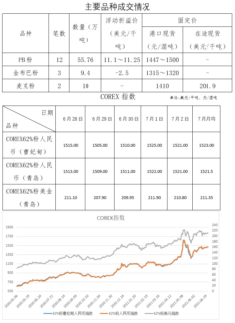 6月28日-7月2日成交22筆共81.36萬噸,其中在途4筆51萬噸,港口18筆30.36萬噸。
