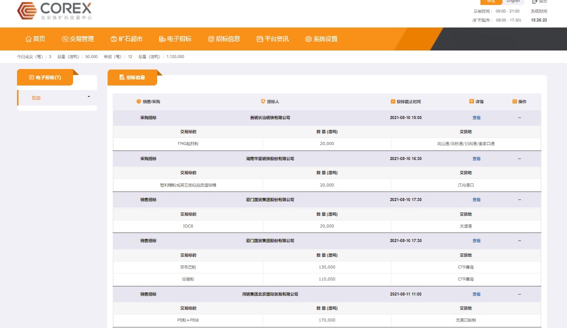 為進(jìn)一步提升綜合服務(wù)能力,滿足行業(yè)企業(yè)對(duì)交易合規(guī)性、便利性和購(gòu)銷渠道多元化的需求,北鐵中心聯(lián)合廈門國(guó)貿(mào)集團(tuán)等單位,在深入調(diào)研的基礎(chǔ)上推出了鐵礦石現(xiàn)貨電子招標(biāo)系統(tǒng)。據(jù)悉,該系統(tǒng)上線當(dāng)日,廈門國(guó)貿(mào)、華菱鋼鐵、河鋼國(guó)際、首鋼長(zhǎng)治等企業(yè)通過系統(tǒng)發(fā)布采購(gòu)和銷售招標(biāo)信息,截止15時(shí)30分合計(jì)47萬噸,購(gòu)銷品種包括FMG超特粉、巴粗、智利精粉、紐曼粉、金布巴粉、PB粉、PB塊等品種,交貨地涵蓋天津港、嵐山港、嵐橋港、日照港、青島港、董家口港及江內(nèi)港口。
