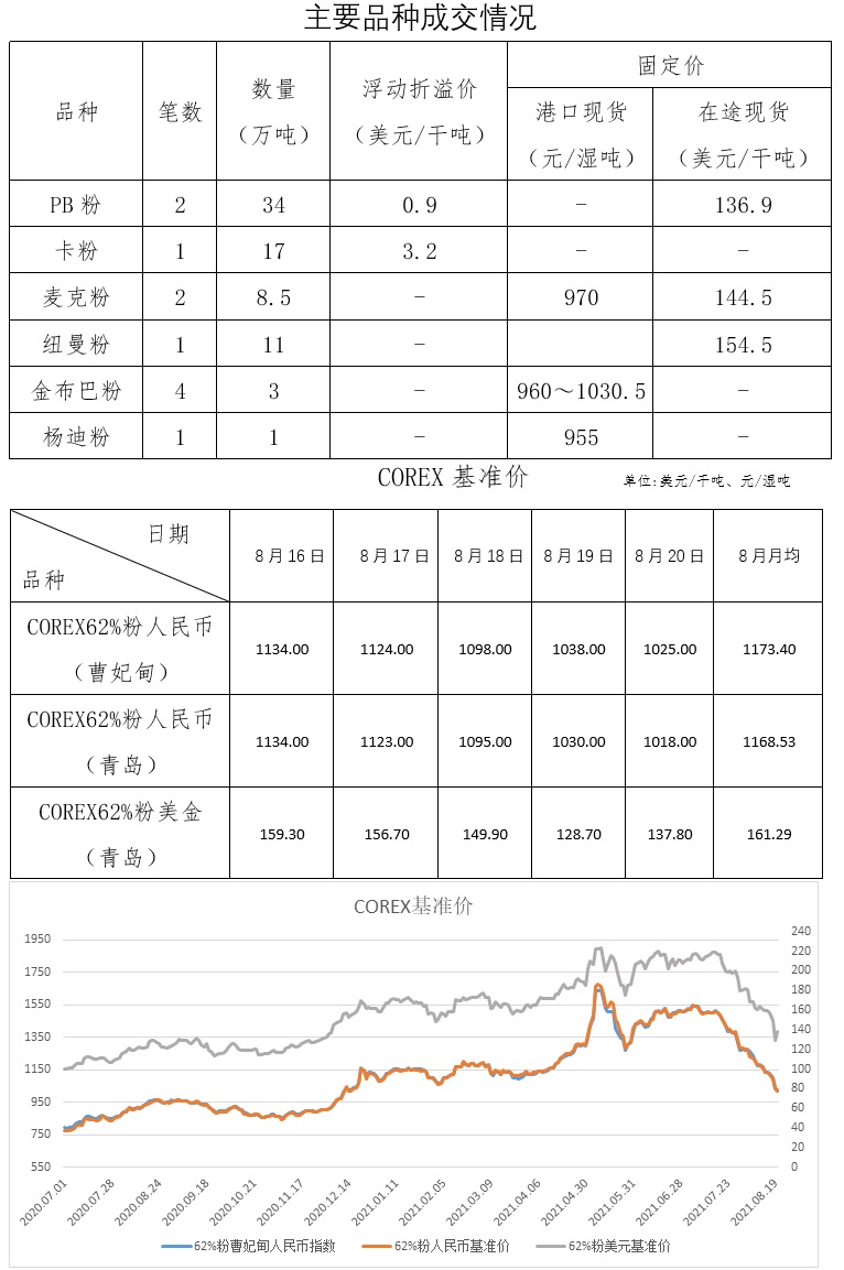 8月16日-8月20日成交12筆共75.5萬噸,其中在途5筆70萬噸,港口7筆5.5萬噸。