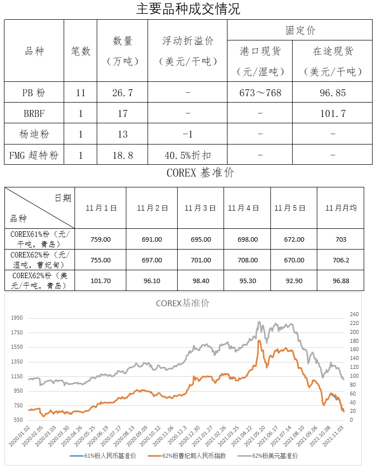 11月1日-11月5日成交17筆共77萬噸,其中在途4筆65.8萬噸,港口13筆11.2萬