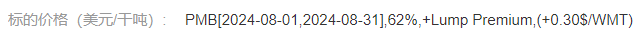 例如銷售塊礦,采用“塊礦公式5”、PMB 62%指數(shù)8月均值、結(jié)算折溢價(jià)+0.3美元,提交申報(bào)后系統(tǒng)顯示價(jià)格為: