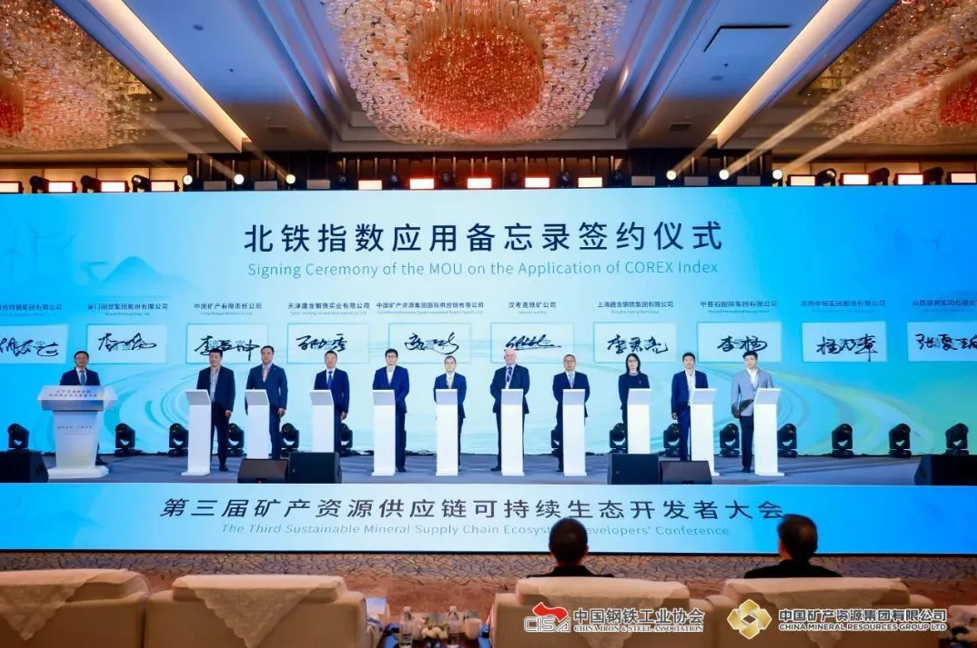 11月6日,在第三屆礦產(chǎn)資源供應鏈可持續(xù)生態(tài)開發(fā)者大會上,中國礦產(chǎn)資源集團國際供應鏈有限公司、上海德龍鋼鐵集團有限公司、天津建龍鋼鐵實業(yè)有限公司、廈門國貿(mào)集團股份有限公司等10家鋼鐵產(chǎn)業(yè)鏈上下游重點企業(yè)共同簽署北鐵指數(shù)應用備忘錄,將逐步在鐵礦石貿(mào)易中采用北鐵指數(shù)作為結(jié)算依據(jù)。